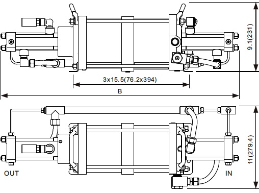 - For LEB06-2T-14 /30 & LEB06-2T-14/60 : B=32.24in.(819mm). For other boosters :B=31.85in.(809mm).