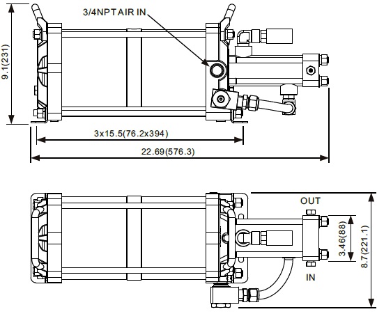 - Max. air drive pressure Pa=150 psig(10.3 bar).