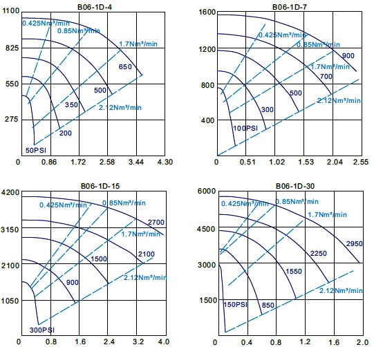 Performance Curves — air drive source of approximately 90 psig: