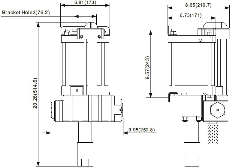 * Air IN port is 3/4 female NPT for standard pumps.