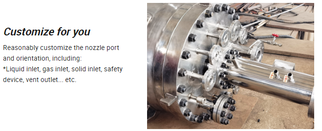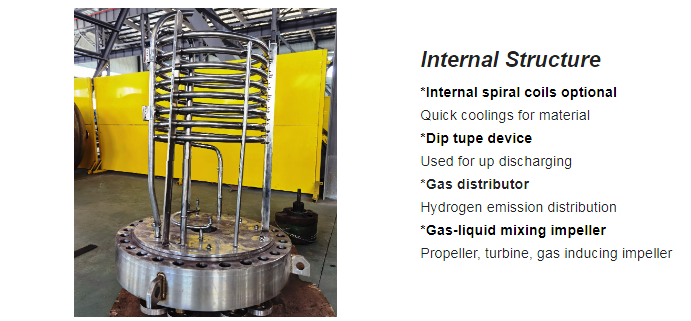 | Standard | Pressure Gage; Thermocouple; Internal Stirring System Liquid inlet and gas inlet with needle valve Dip Tube; Safety Rupture Disc; Cooling Coil |