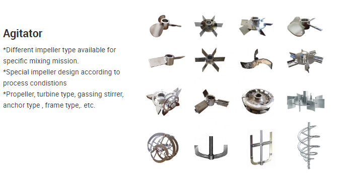 - Stirrer:Propeller,Paddle,Turbine,Gas induction,customized