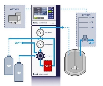 - gas dosing system BPC2 in combination with pressure reactors creates an optimal solution for safe, accurate and reproducible hydrogenations.