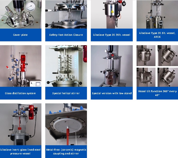 - A wide range of accessories for feeding of liquids, solids, gas, a fast action closure device and others like catalyst baskets etc. are available – talk to us to define the right setup for your specific need.