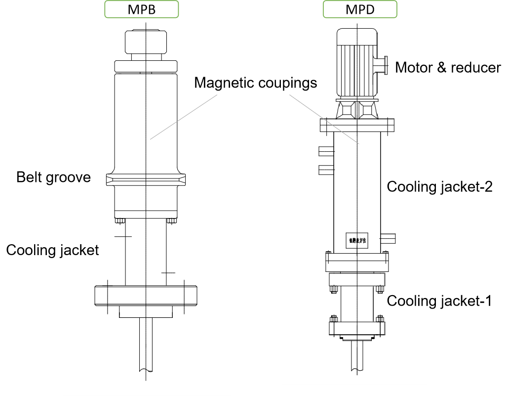 Lab Belt Driven Magnetic Couplings Drive LELBDMCD - this series magnetic couplings drive is suitable for the pilot production reactor, including MPD (Direct drive) and MPB (Belt drive) two model type, which is widely for the hydrogenatin, amination, noxious gases, easy explosion application.