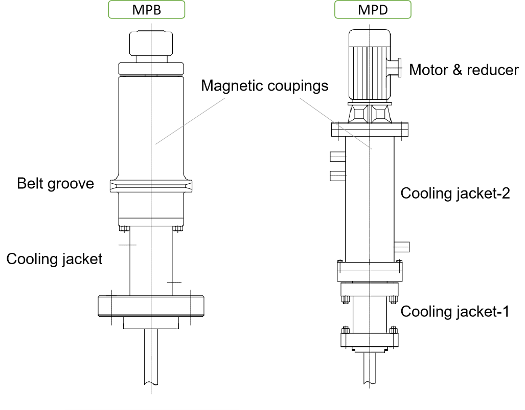 Magnetic Couplings Drive for Pilot High Pressure Reaction LEMCDPHPR - this series magnetic couplings drive is suitable for the pilot production reactor, including MPD (Direct drive) and MPB (Belt drive) two model type, which is widely for the hydrogenatin, amination, noxious gases, easy explosion application.