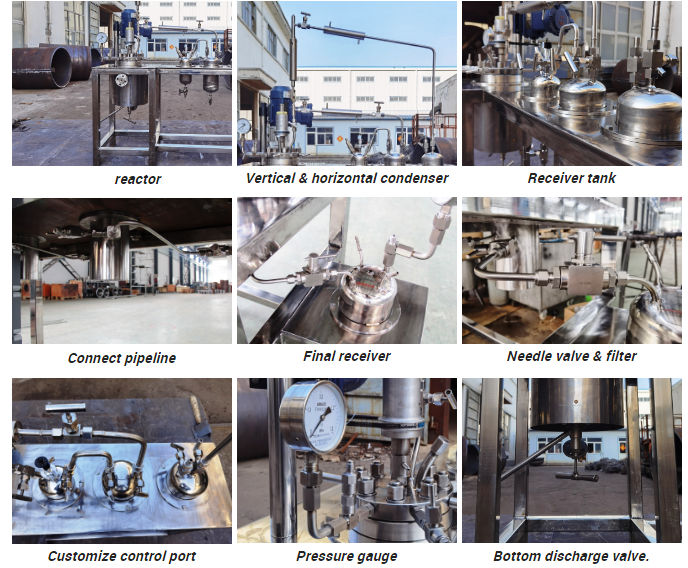 Type LEMPLPR-CSTR-0.1-1 LEMPLPR-CSTR-1-10 LEMPLPR-CSTR-10-25 LEMPLPR-CSTR-25-50 Volume(L) 0.1-1 1-10 10-25 25-50 Working pressure(MPa) -0.1-30 -0.1-30 -0.1-30 -0.1-30 Motor power(W) 40-30 80-200 300-750 1100 Heating power(KW) 0.1-1 1-3 3-6 4-9 Working temperature(°C) -196-500 Stirring speed(r/min) 0-1500 Heating type Electric heating, thermal oil heating available Cooling Method Spiral coils (Single coils, serpentine coils available) Charging type Charging from above, discharging from bottom. Stirring type Customized anchor-type, frame-type, propeller type, turbine-type, scraper-type or paddle-type..etc Seal type Magnetic seal, mechanical seal. Motor General DC motor, DC servomotor or explosion-proof motor according to customers requirements. Controller Device Temperature, time and heating voltage display Temperature adjustment control. accuracy±1 °С Stirring speed display and control.Others Standard fittings Pressure Gage; Thermocouple; Internal Stirring System Liquid inlet and gas inlet with needle valve; Gas Release Valve Dip Tube; Safety Rupture Disc; Cooling Coil