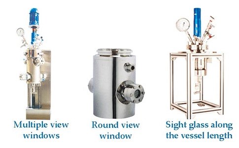 These are quartz or sapphire view glass windows / light & sight glass of small diameter or along the length of the vessel with special cameras & software for continuous online viewing / recording in vessels to see the reaction. Suitable for high pressures up to 200 bar & any autoclave / reactor volume.