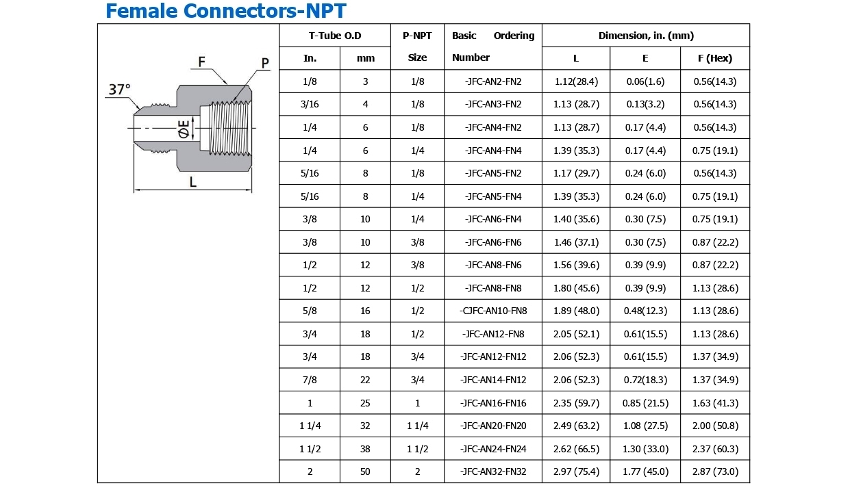 Stainless Steel or Carbon Steel 37 Degree Flared Tube Fittings NPT/BSPT Female Connector.