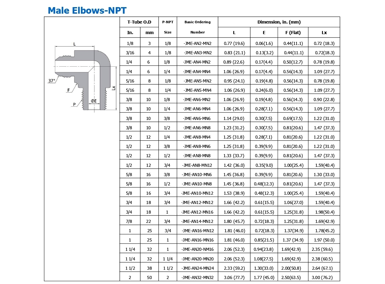 Stainless Steel or Carbon Steel Flared BSPP/UBF Male Thread Elbows.