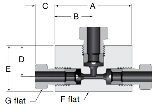 Tube OD In. Ordering NO. Dimensions in.(mm) A B C D E F G 60,000 psig (4134 bar) 1/4 -SPT-T4-60K 2.00 (50.8) 1.00 (25.4) 0.59 (15.0) 0.88 (22.4) 1.25 (31.8) 1 5/8 3/8 -SPT-T6-60K 2.00 (50.8) 1.00 (25.4) 0.72 (18.3) 1.06 (27.0) 1.56 (39.6) 1 13/16 9/16 -SPT-T9-60K 2.62 (66.5) 1.31 (33.3) 1.00 (25.4) 1.38 (34.9) 2.12 (53.8) 11/2 13/16