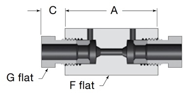 Tube OD In. Ordering NO. Dimensions in.(mm) A C F G 60,000 psig (4134 bar) 1/4 -SPC-T4-60K 1.38 (35.1) 0.59 (15.0) 3/4 5/8 3/8 -SPC-T6-60K 1.75 (44.5) 0.72 (18.3) 1 13/16 9/16 -SPC-T9-60K 2.25 (57.2) 1.00 (25.4) 13/8 13/16