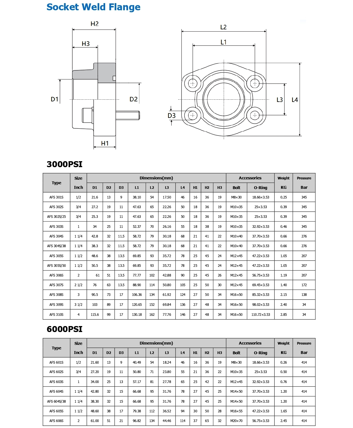 Home → Equipment →HC-276 Fittings and Valves →SAE Flange CS Socket Weld FlangeSend a requestSend a request SS-AFSCS Socket Weld Flange NameEmailPhoneCommentPage productSubmit Form DescriptionSpecification ImagesCarbon Steel SAE J518, ISO 6162.2 Heavy 6000psi SAE Socket Weld Flange. Technical Data: Product Details Product name: SAE Socket Weld Flange Model Number: SS-AFS Media Temperature: -65 to 450 F (-54 to 230 C) Standard: ANSI, DIN, ISO Type: Welding Flange Specification: 1/2-3" Material: Stainless Steel or Carbon Steel Structure: Flanges Connection: Welding Sealing Surface: O-Ring Manufacturing Way: Forging Media: Water, Oil, Gas and Alkaline or Acidic Liquid ModelSS-AFSBrandLabEquipxStandardANSI, DIN, ISOMedia Temperature-65 to 450 F (-54 to 230 C)