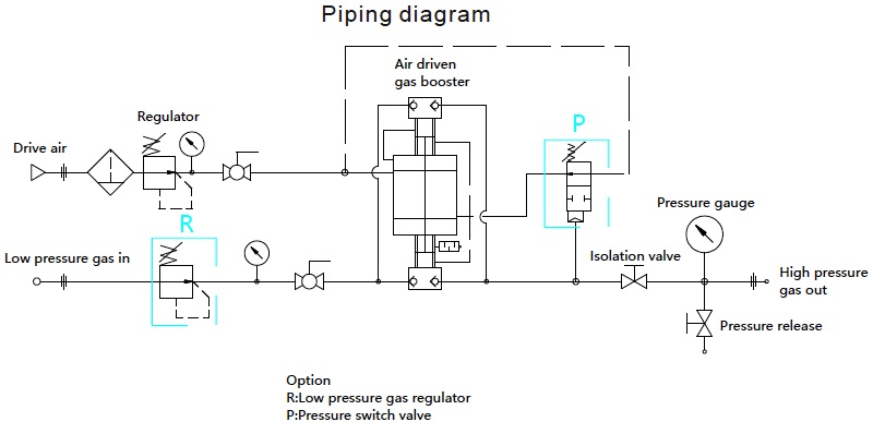 - Driven by compressed air, the output pressure can be smoothly adjusted by the driving air pressure through the regulator;