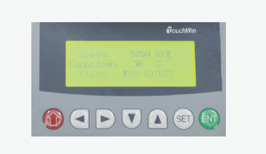 The instrument adopts a text display, on which the rotational speed, test status and operating time can be shown. The instrument’s operating time and rotational speed in manual mode and/or in automatic mode