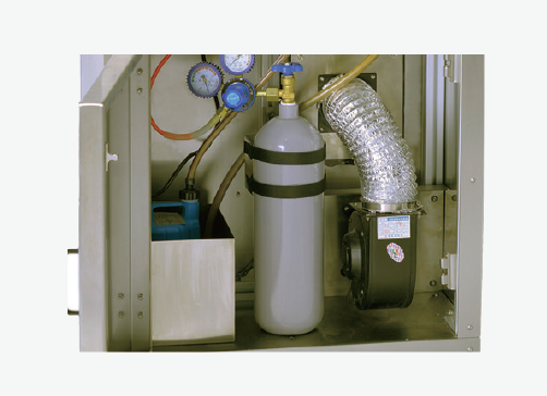 >> Safe test situation is ensured with the design of an air outlet which can be connected to an external air exhaust system.